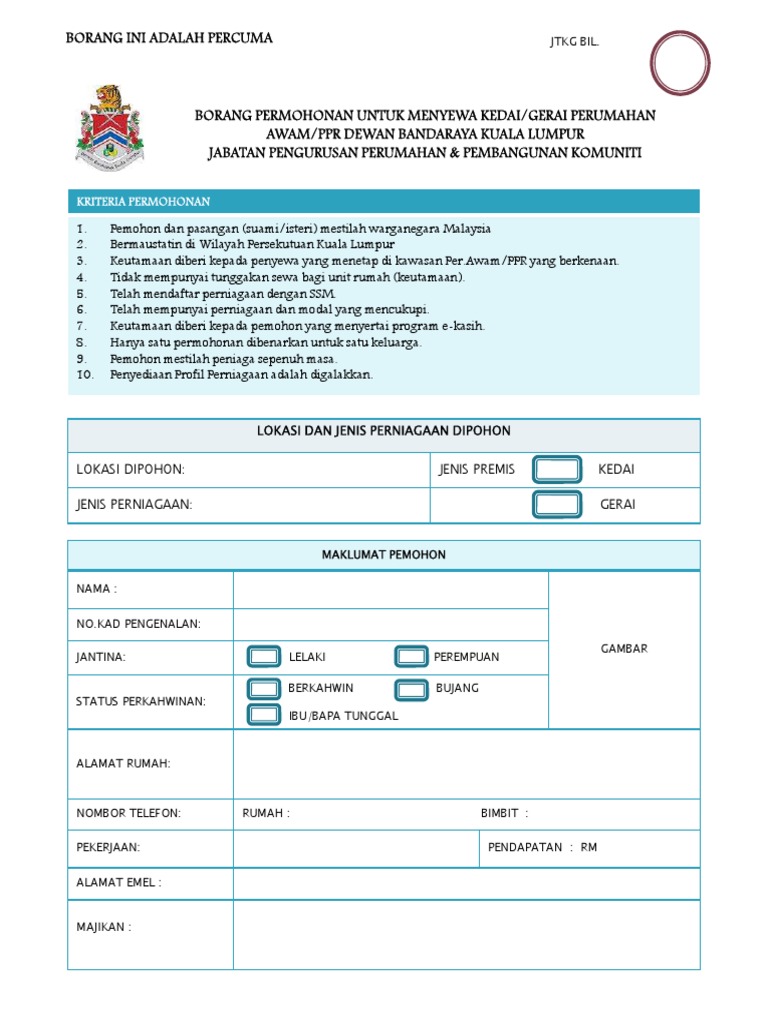 Borang Lesen Penjaja Dbkl Ms Word Pdf