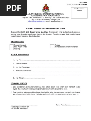 Borang Permohonan Pembaharuan Lesen Pdf Documents Library